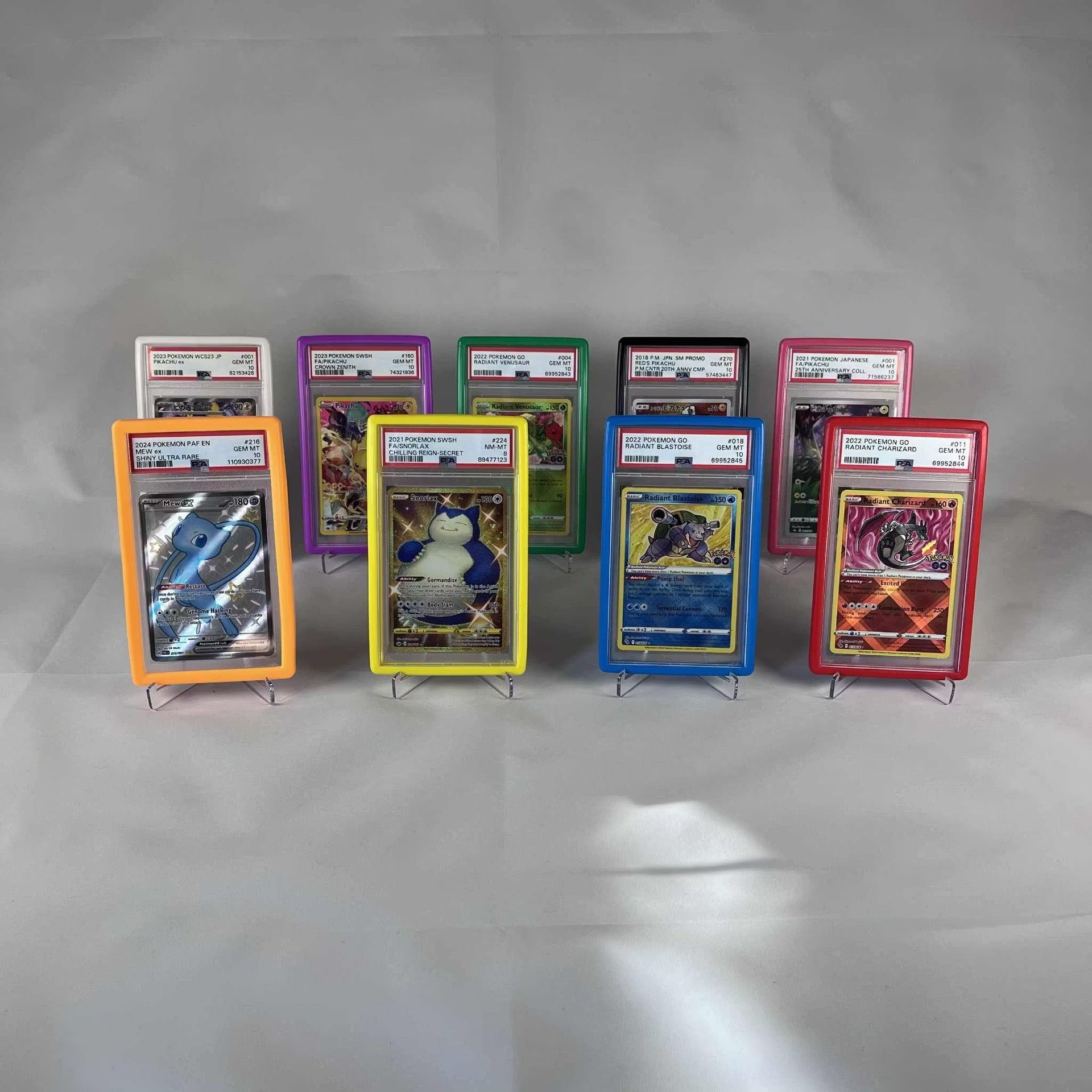 Letar du efter ett smart och snyggt sätt att skydda dina PSA-kort? Våra silikonskydd i olika färger för PSA-kort är det perfekta tillbehöret för både samlare och investerare. Med högkvalitativt silikonmaterial och en exakt passform får dina graderade kort det skydd de förtjänar – samtidigt som du kan anpassa utseendet med färger som passar din stil eller samling.